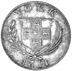 YORKSHIRE, York, Cattle and Banker's shillings, 1811, ornaments at sides of shield, cruder die work ...