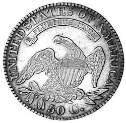 U.S.A., silver half dollar, 1828, Liberty Cap type, Overton 110, square based 2. With blue ...