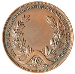 THE NEW ZEALAND FEDERATION OF CAGE BIRD CLUBS (INC), in bronze (48mm), by W&H (Walker ...