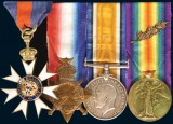 GROUP OF FIVE. 1914-15 Star; British War Medal 1914-18; Victory Medal 1914-19; Territorial Efficiency Medal (GVR); Efficiency Medal (GVR), Territorial scroll, 1522 Pte. J.B. Lyons. ...