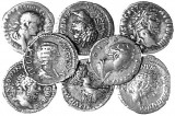 ROMAN SILVER DENARII, second century A.D., with various reverses, Trajan, (RIC 347 [2], 348); Hadrian (RIC 345), hemidrachm from Cappadocia rev. club; Antoninus Pius (RIC ...
