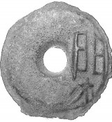 CHINA, Wang Mang rebel, (A.D. 7-22), gold inlayed key money of value 5000, obv. Yih-tao (in gold) p'ing wu-chien, 'one knife : value five thousand', ...