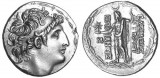 SYRIA, Kingdom of, Demetrius I, (162-150 B.C.), silver tetradrachm, (16.59 grams), Antioch mint, issued 162-156 B.C., obv. diademed head of Demetrius to right within laurel ...