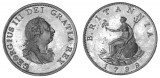 GEORGE III, halfpenny, 1799, six relief gun ports, (Peck 1249, S.3778). Some mint red particularly on the obverse, also with interesting die crack on the ...
