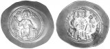 MICHAEL VII, (A.D.1071-1078), electrum gold histamenon nomisma (scyphate), Constantinople mint, (4.258 grams), obv. bearded Christ enthroned facing, wearing nimbus, raising right hand, in left hand ...