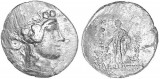 MACEDON, Amphipolis (158-149 B.C.), silver tetradrachm, (16.748 grams), obv. Macedonian shield, at centre of which is a bust of Artemis Tauropolos to right with bow ...