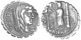 L. JULIUS BURSIO, (c.85 B.C.), silver denarius, Rome mint, (3.532 grams), obv. Genius (or Apollo Vejovis) bust laureate to right, trident and lyre behind, rev. ...