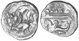 PHOENICIA, Byblos, king `Uzzib`l (Azbaal), (365-350 B.C.), silver dishekel or seqel, (13.26 grams), obv. war galley travelling to left with lion's head prow and three ...
