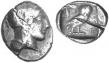 CENTRAL GREECE, Phocis, silver triobol, (c.457-446 B.C.), (2.718 grams), Period III, obv. bull's head facing, rev. archaic head of Artemis to right in incuse square, ...