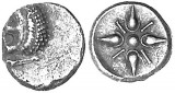 CARIA, Hecatomnos as Satrap, (395-377 B.C.), silver drachm, (4.15 grams), obv. lion head to left, foreleg below, rev. ornamental star within incuse circle, (S.4951, BMC ...