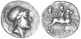 PHRYGIA, Kibyra, (c.166-84 B.C.), silver drachm, (2.866 grams), obv. young male head wearing crested helmet to right, rev. armed horseman galloping right, holding spear couched, ...