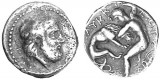 MACEDON, Mende, (465-424 B.C., but c.450 B.C.), silver tetradrachm, (16.836 grams), obv. Dionysos reclining to left on the back of an ass standing right, he ...