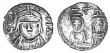 HERACLIUS, (A.D. 610-641), half siliqua, Carthage mint, (0.60 grams), obv. crowned cuirassed bust facing, around D N ERAC LIO P P AV, rev. facing busts ...