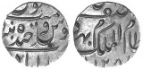 INDORE, Tukoji Rao II (SE1766-1808, A.D. 1844-1886), silver muhra (rupee), SE1780, (1858), obv. Sun facing, (KM.15). Cut in edge, otherwise nearly extremely fine and scarce. ...