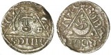 IRELAND, King John, (1199-1216), c. 1207-1211, silver penny. Crowned bust in triangle, hand holding sceptre. Rex. Sun, moon and three stars in triangle. Roberd. ...
