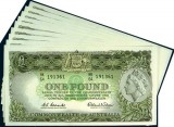 ONE POUND, Riddle/Sheehan (1933) to Coombs/Wilson (1961) (R.28-31), 33(2), 34) also ten shillings, Armitage/McFarlane (1942) (R.13) (2). Fair - very good. (9)