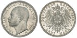 GERMANY, Prussia, Wilhelm II, five marks 1904A, (KM.523); Saxony, Albert, two mark 1876E, (KM.1238); Bremen, 2« pattern schwaren, (KM.PN37). Extremely fine; fine; fair. (3)