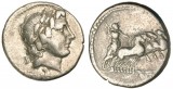 L. FLAMINIUS CHILO, (109-108 B.C.), Rome mint, (3.806 grams), obv. helmeted head of Roma to right, ROMA behind, X below chin, rev. Victory in biga, ...
