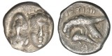 MOESIA INFERIOR, Istros, (400-350 B.C.), silver stater, (4.975 grams), obv. two young male heads facing, side by side, left inverted, right upright, rev. sea-eagle standing ...