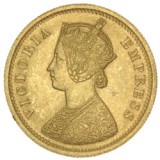 QUEEN VICTORIA, gold mohur, 1882C, Calcutta mint, (11.67 grams), obv. two flower type and V raised in centre of dress, rev. C privy mark, (Pr. ...