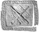 BELT BUCKLE, cricket, embossed brass (38mm x 50mm0, with British registration mark. Fine.