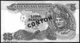 MALAYSIA, Bank Negara Malaysia, specimen five ringgit (1986-1995 issue), red CONTOH across both sides of note, Specimen note No.40, (cf.P.28). Uncirculated and scarce.