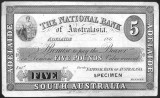 THE NATIONAL BANK OF AUSTRALASIA, uniface five pounds, Adelaide, undated (186- printed), not numbered, unsigned specimen note, stamped 'Specimen' in black in signature field, imprint ...