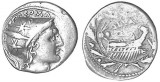 MN. FONTEIUS, (108-107 B.C.), silver denarius, Rome mint, (3.860 grams), obv. Conjoined laureate heads of the Dioscuri to right, without * before, rev. galley to ...