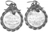 HUNTER RIVER A&H ASSOCIATION WEST MAITLAND SHOW 1869, handengraved in silver (29mm) with ornate vineleaf surround mount and loop suspension reverse engraved 'Awarded/to/A. Wright/for/specimen of ...