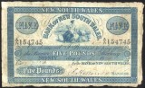 BANK OF NEW SOUTH WALES, five pounds, issued at Sydney, April 1, 1876, (18 printed), No.A/A 154745, hand signed by Manager E.R. Halloran and entered ...