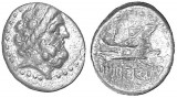 PHOENICIA, Aradus, (144-143 B.C.), AE 15, (3.684 grams), obv. head of Zeus to right, dotted border, rev. triple pointed ram of galley to right, Phoenician ...