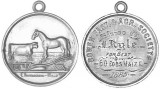 THE NATIONAL AGRICULTURAL SOCIETY OF VICTORIA, in silver (36mm) by (J.Hogarth) reverse inscribed 'Fitzroy City/ Carriage Co./ 1st Prize/ Express Waggon/ 1884'. Toned, edge bruise ...