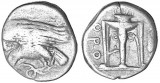 ITALY, Bruttium, Croton (Kroton), (420-400 B.C.), silver nomos, stater or didrachm (7.316 grams), obv. eagle standing to left, holding serpent, rev. tripod, QPO to left, ...