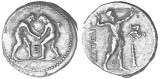 PAMPHYLIA, Aspendos, (c.375-360 B.C.), silver stater, (10.37 grams), obv. two naked athletes as wrestlers grasping each other by the hands, E between, dotted border, rev. ...