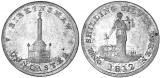 WARWICKSHIRE, Birmingham, Workhouse shilling immitations, 1811 (D.14 This Piece (illustrated), D.15 (illustrated), D.16 This Piece, D.16 silver plated copper (illustrated). Fine - nearly uncirculated, first ...