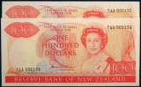 NEW ZEALAND, Reserve Bank, Hardie type II, 1981-5, one hundred dollars, YAA 001134/5 (P.175a) consecutive pair. Uncirculated. (2)