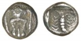 IONIA, Miletus, (c.530-510 B.C.), silver twelth stater or obol, (1.19 grams), obv. forepart of lion and legs to right, rev. star ornament within incuse square, ...
