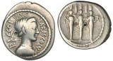 LEPIDUS AND OCTAVIAN, (Spring Summer 42 B.C.), silver denarius, Italian mint, (3.97 grams), obv. bare head of Lepidus to right, around LEPIDVS PONT MAX III ...