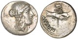 L. ROSCIUS FABATUS, (c.64 B.C.), silver denarius, Rome mint, (3.85 grams), obv. Juno Sospita head to right wearing goat's skin, jug symbol behind, L. ROSCI ...