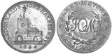 HACKNEY, D.A. Rebello's halfpenny, 1795 (D&H 309) a proof struck in silver. Grey and iridescent toned FDC and very rare.