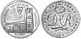 HACKNEY, D.A. Rebello's halfpenny, 1795, struck without a collar on a thin spread flan (D&H 310b). Bluish brown patina, uncirculated and rare.