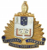 AUSTRALIA. Melbourne Grammar School Cadet Corps, hat badges in gilt and enamel (41mm x 39mm). A badge with one lug missing, fine - very fine. ...