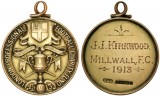 LONDON PROFESSIONAL FOOTBALL CHARITY FUND, 1913, fob in gold (9ct, 16.2gms), by V&S, 32mm, loop top suspension. Reverse inscribed "J.J. Kirkwood/Millwall F.C./1913". Very fine.