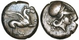 CORINTHIA, Corinth, (350-306 B.C.), silver stater, (8.304 grams), obv. Pegasos flying to left, Q below, rev. head of Athena to left, wearing Corinthian helmet, Thessalian ...