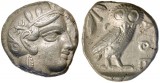 ATTICA, Athens, (449-413 B.C.), silver tetradrachm, (17.21 grams), obv. head of Athena to right wearing ivy crested helmet, eye in profile, rev. owl standing to ...