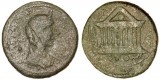 PAMPHYLIA, Perge, (c.2nd-1st century B.C.), AE 16, (3.978 grams), obv. cult statue of Artemis of Perge within distyle shrine, rev. bow and quiver with **[A]RTEMIDOS* ...