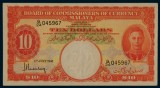 MALAYA & BRITISH BORNEO, Queen Elizabeth II, ten dollars 1953 (P.3) number A/74 260895. Attractive, nearly uncirculated.