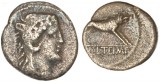 MARK ANTONY, (32-31 B.C.), silver denarius, mint moving with Mark Antony, (3.444 grams), obv. praetorian galley to right with rowers etc., around legends ANT AVG ...