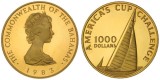 BAHAMAS, Elizabeth II, proof gold one thousand dollars, 1983 (KM.1000), America's Cup Challenge (1.2 oz of pure gold), mintage 300. Scarce. FDC.