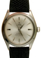 BOYS SIZE STAINLESS STEEL TUDOR OYSTER WRISTWATCH C1940S, manual wind, 21 jewels, shock resisting, expertly refinished black dial (23mm) with gold baton numbers and hands, ...